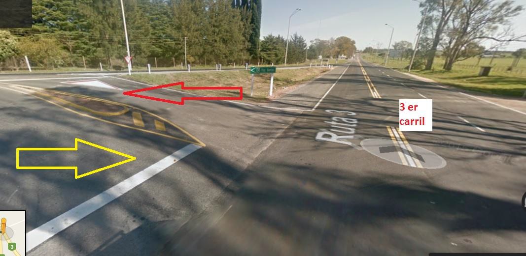 Ruta 3 y 24: antigüo cruce triángulo con agregado de tercer carril (eso está mejor) y un ingreso/egreso perpendicular para entrar o salir (siguiente imagen a nivel):