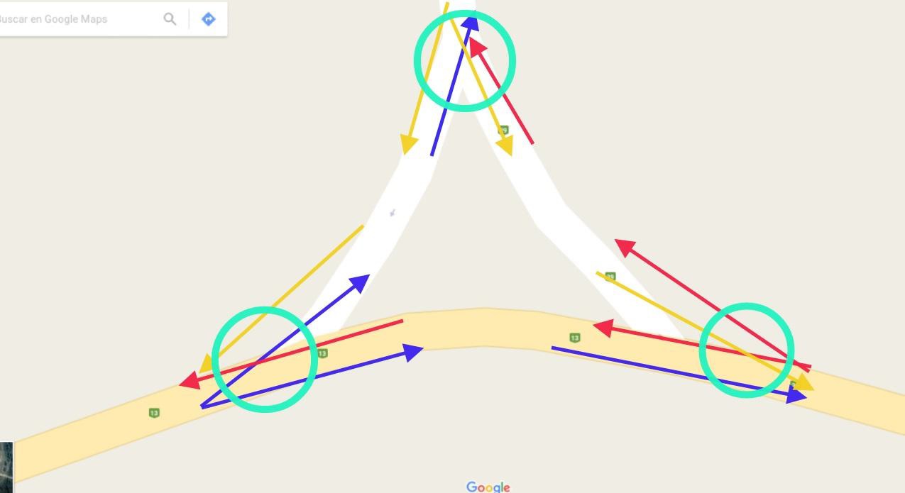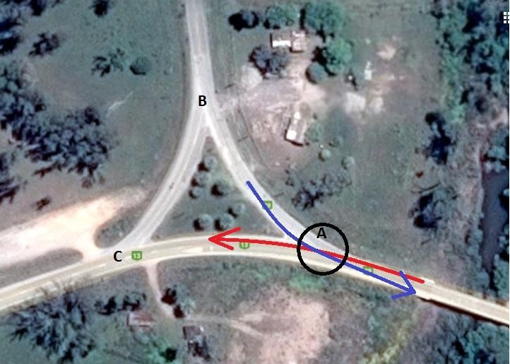 (Textos: Manuel da Fonte y Javier Melián) – Cuando se cruzan (cruce x) o se intersectan dos rutas (cruce T) se deben generar métodos para canalizar el tránsito en las distintas direcciones a las que el conductor tiene opción a dirigirse. En el pasado, una de las primeras formas que se utilizaba para los cruces T, por ejemplo, fue un cruce con forma de triángulo (ej. ruta 13 y 39):