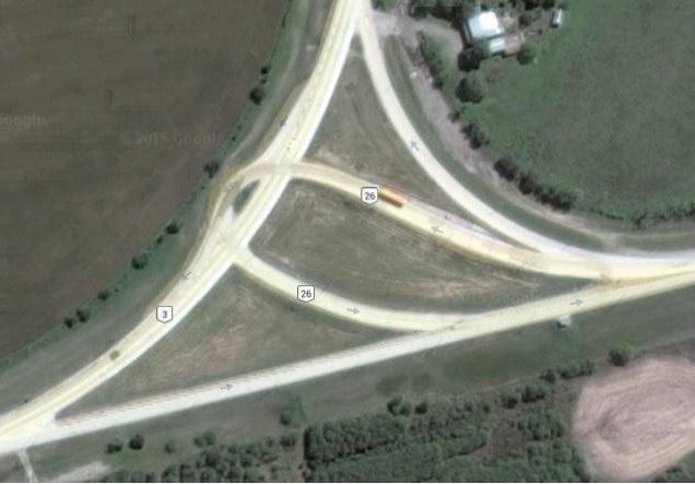 3 – Ruta 3 y 26, Paysandú (cruce con vía transversal, casi una rotonda partida, que le falta el retorno para quienes circulan por la vía prioritaria).